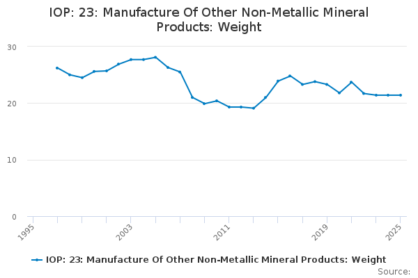 Download this time seriesIOP: 23: Manufacture Of Other Non-Metallic Mineral Products: Weight