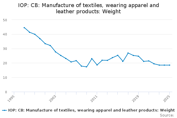 Download this time seriesIOP: CB: Manufacture of textiles, wearing apparel and leather products: Weight