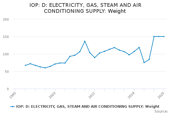 Download this time seriesIOP: D: ELECTRICITY, GAS, STEAM AND AIR CONDITIONING SUPPLY: Weight