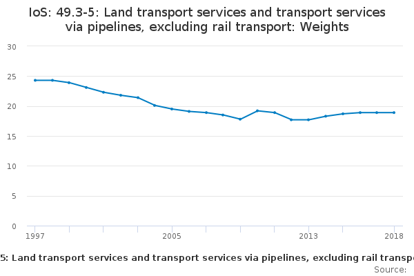 Download this time seriesIoS: 49.3-5: Land transport services and transport services via pipelines, excluding rail transport: Weights
