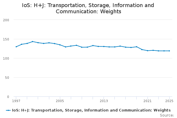 Download this time seriesIoS: H+J: Transportation, Storage, Information and Communication: Weights