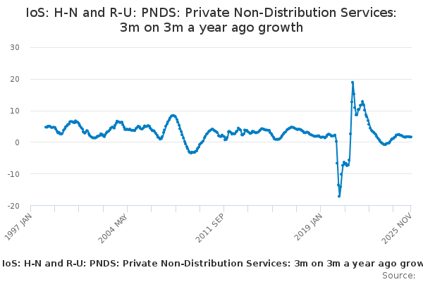 Download this time seriesIoS: H-N and R-U: PNDS: Private Non-Distribution Services: 3m on 3m a year ago growth