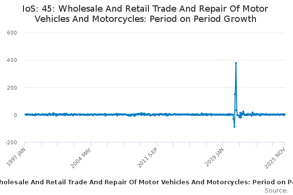 Download this time seriesIoS: 45: Wholesale And Retail Trade And Repair Of Motor Vehicles And Motorcycles: Period on Period Growth
