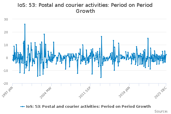 Download this time seriesIoS: 53: Postal and courier activities: Period on Period Growth