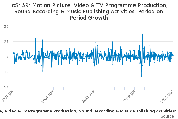 Download this time seriesIoS: 59: Motion Picture, Video & TV Programme Production, Sound Recording & Music Publishing Activities: Period on Period Growth