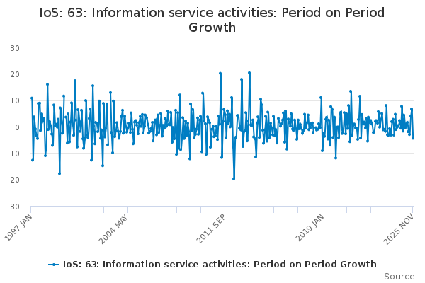 Download this time seriesIoS: 63: Information service activities: Period on Period Growth