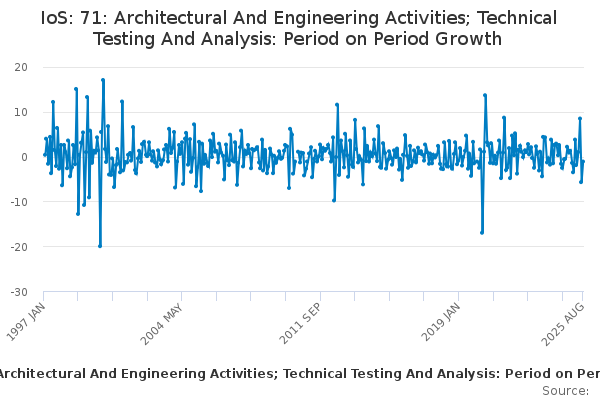 Download this time seriesIoS: 71: Architectural And Engineering Activities; Technical Testing And Analysis: Period on Period Growth