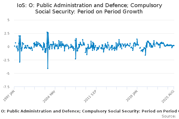 Download this time seriesIoS: O: Public Administration and Defence; Compulsory Social Security: Period on Period Growth