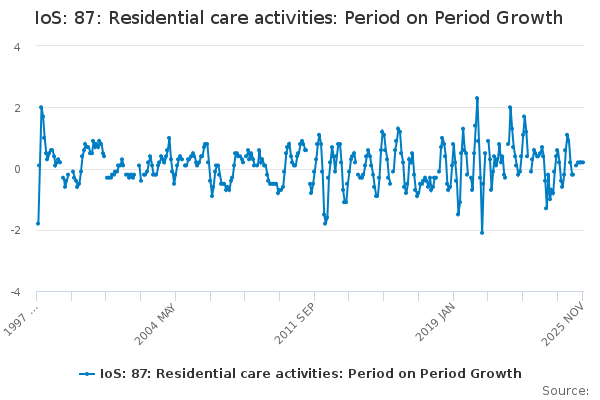 Download this time seriesIoS: 87: Residential care activities: Period on Period Growth