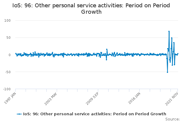 Download this time seriesIoS: 96: Other personal service activities: Period on Period Growth