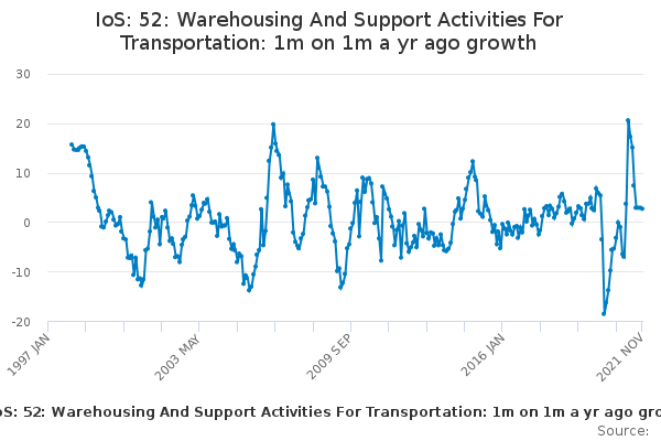 Download this time seriesIoS: 52: Warehousing And Support Activities For Transportation: 1m on 1m a yr ago growth