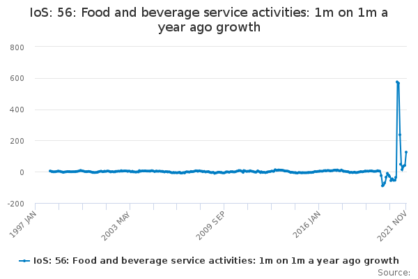 Download this time seriesIoS: 56: Food and beverage service activities: 1m on 1m a year ago growth