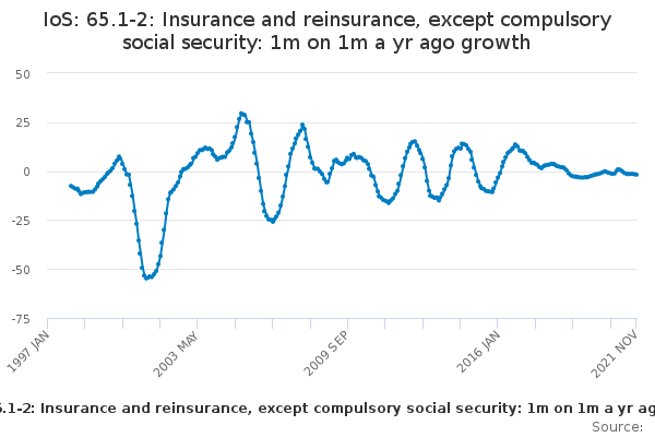 Download this time seriesIoS: 65.1-2: Insurance and reinsurance, except compulsory social security: 1m on 1m a yr ago growth