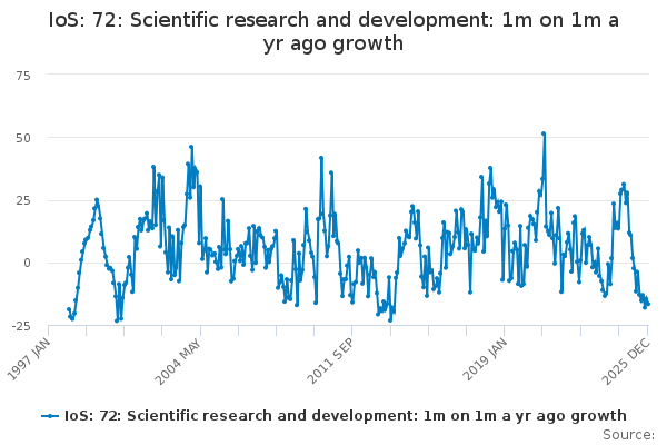 Download this time seriesIoS: 72: Scientific research and development: 1m on 1m a yr ago growth