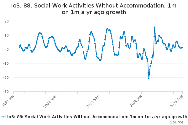 Download this time seriesIoS: 88: Social Work Activities Without Accommodation: 1m on 1m a yr ago growth