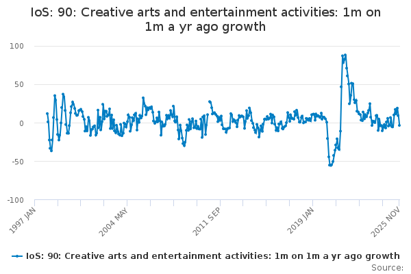Download this time seriesIoS: 90: Creative arts and entertainment activities: 1m on 1m a yr ago growth