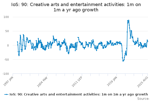 Download this time seriesIoS: 90: Creative arts and entertainment activities: 1m on 1m a yr ago growth