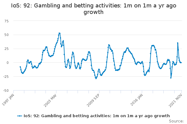 Download this time seriesIoS: 92: Gambling and betting activities: 1m on 1m a yr ago growth