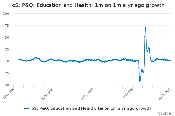Download this time seriesIoS: P&Q: Education and Health: 1m on 1m a yr ago growth
