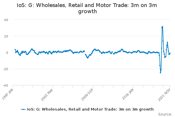 Download this time seriesIoS: G: Wholesales, Retail and Motor Trade: 3m on 3m growth