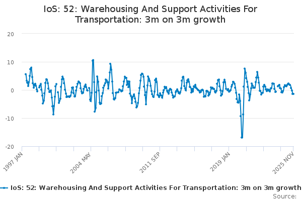 Download this time seriesIoS: 52: Warehousing And Support Activities For Transportation: 3m on 3m growth