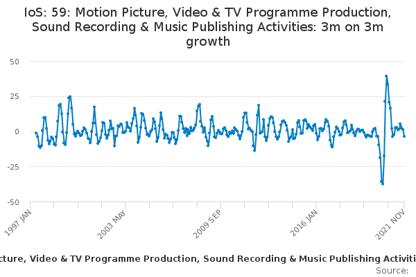 Download this time seriesIoS: 59: Motion Picture, Video & TV Programme Production, Sound Recording & Music Publishing Activities: 3m on 3m growth
