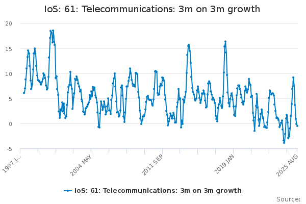 Download this time seriesIoS: 61: Telecommunications: 3m on 3m growth