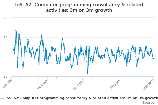 Download this time seriesIoS: 62: Computer programming consultancy & related activities: 3m on 3m growth