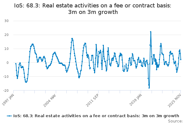Download this time seriesIoS: 68.3: Real estate activities on a fee or contract basis: 3m on 3m growth