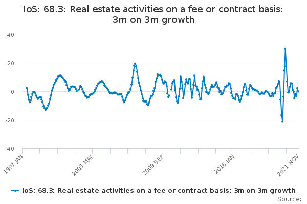 Download this time seriesIoS: 68.3: Real estate activities on a fee or contract basis: 3m on 3m growth