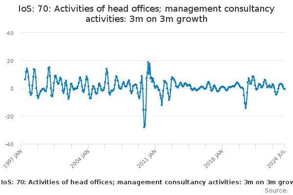 Download this time seriesIoS: 70: Activities of head offices; management consultancy activities: 3m on 3m growth
