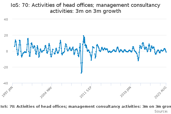 Download this time seriesIoS: 70: Activities of head offices; management consultancy activities: 3m on 3m growth