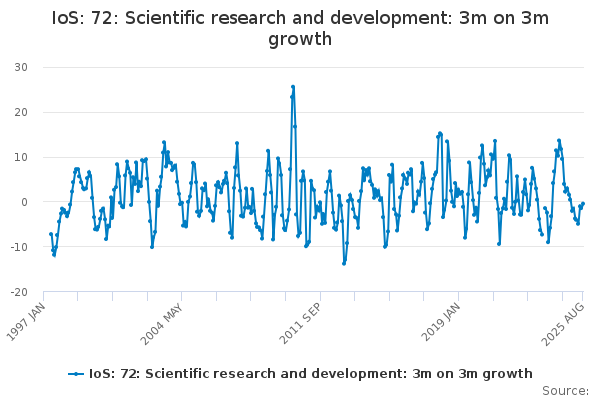 Download this time seriesIoS: 72: Scientific research and development: 3m on 3m growth