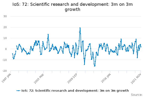 Download this time seriesIoS: 72: Scientific research and development: 3m on 3m growth