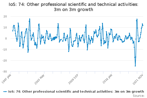 Download this time seriesIoS: 74: Other professional scientific and technical activities: 3m on 3m growth