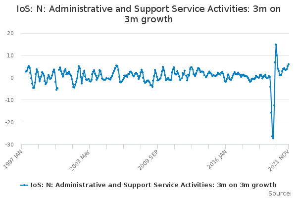 Download this time seriesIoS: N: Administrative and Support Service Activities: 3m on 3m growth