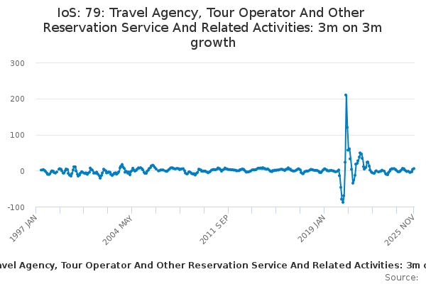 Download this time seriesIoS: 79: Travel Agency, Tour Operator And Other Reservation Service And Related Activities: 3m on 3m growth