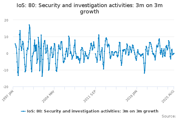 Download this time seriesIoS: 80: Security and investigation activities: 3m on 3m growth