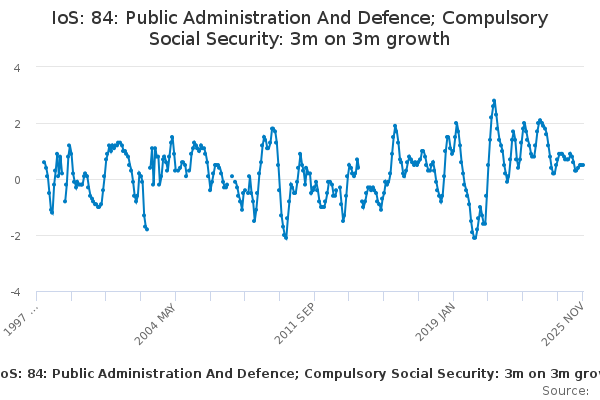 Download this time seriesIoS: 84: Public Administration And Defence; Compulsory Social Security: 3m on 3m growth