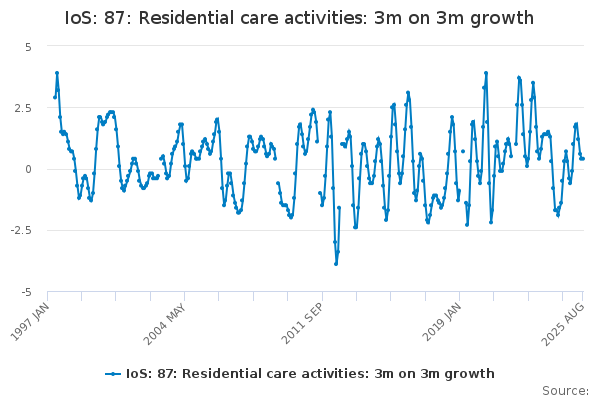 Download this time seriesIoS: 87: Residential care activities: 3m on 3m growth