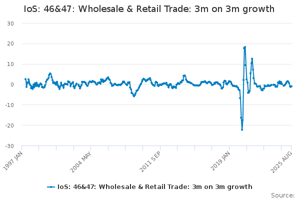 Download this time seriesIoS: 46&47: Wholesale & Retail Trade: 3m on 3m growth