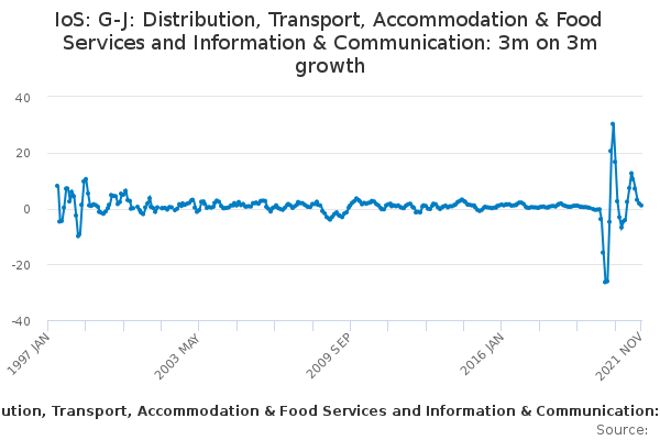 Download this time seriesIoS: G-J: Distribution, Transport, Accommodation & Food Services and Information & Communication: 3m on 3m growth