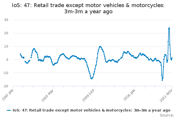 Download this time seriesIoS: 47: Retail trade except motor vehicles & motorcycles: 3m-3m a year ago