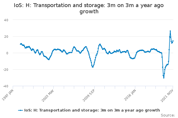 Download this time seriesIoS: H: Transportation and storage: 3m on 3m a year ago growth