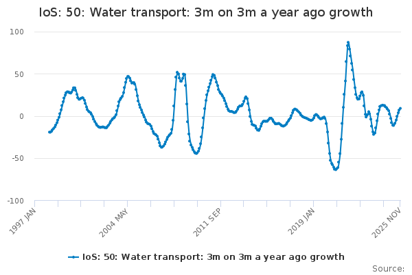 Download this time seriesIoS: 50: Water transport: 3m on 3m a year ago growth