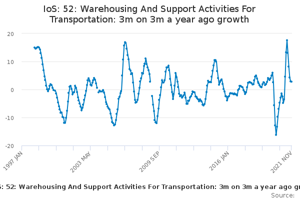 Download this time seriesIoS: 52: Warehousing And Support Activities For Transportation: 3m on 3m a year ago growth