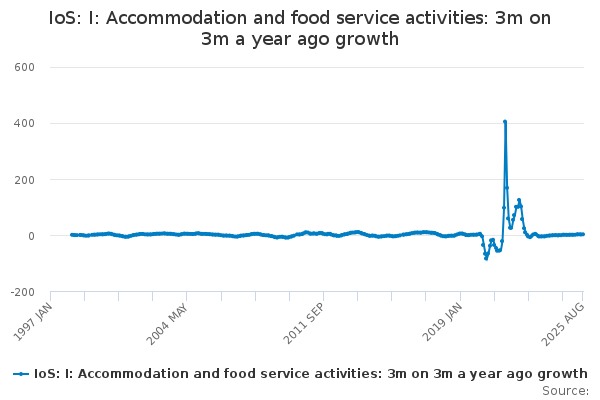 Download this time seriesIoS: I: Accommodation and food service activities: 3m on 3m a year ago growth