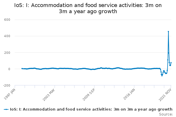 Download this time seriesIoS: I: Accommodation and food service activities: 3m on 3m a year ago growth