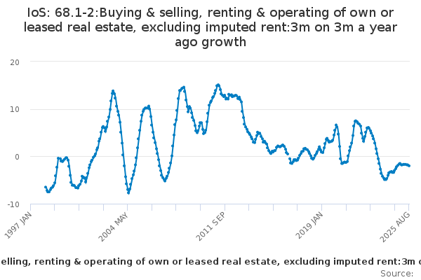 Download this time seriesIoS: 68.1-2:Buying & selling, renting & operating of own or leased real estate, excluding imputed rent:3m on 3m a year ago growth
