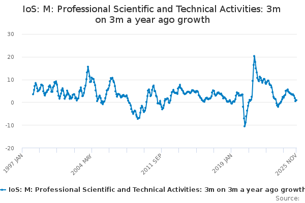 Download this time seriesIoS: M: Professional Scientific and Technical Activities: 3m on 3m a year ago growth